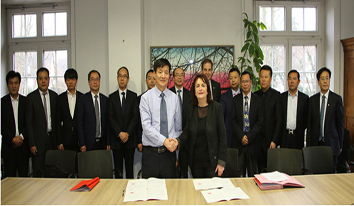 雙方簽署合作交流框架協(xié)議。握手者為費(fèi)舍爾副主席和劉宏陽(yáng)副縣長(zhǎng)